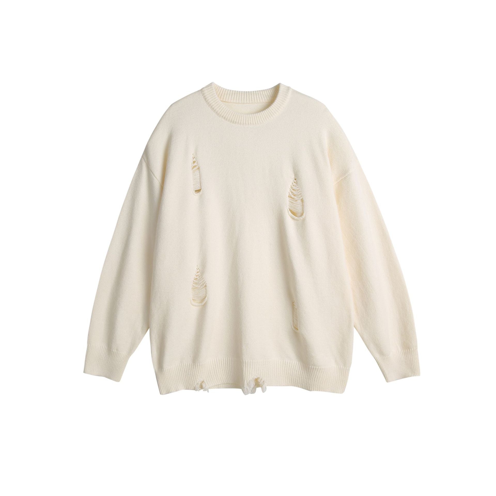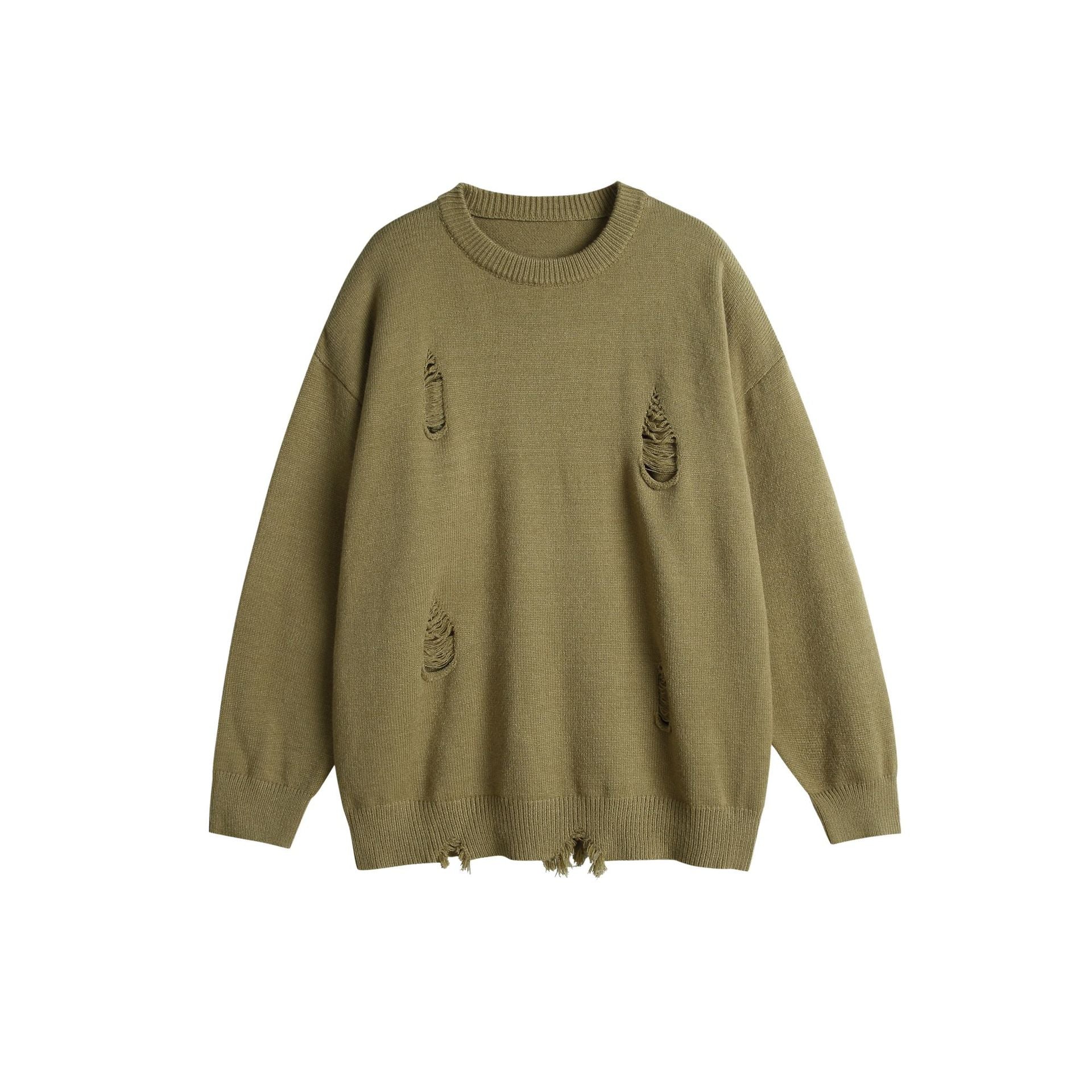 Plain Color Crew Neck Loose Fit Unisex Knit Sweater